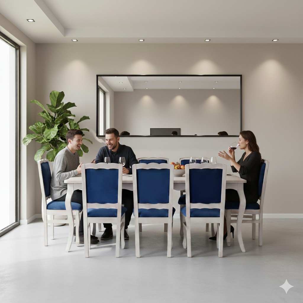 - Sillas: El conjunto incluye 8 sillas, perfectamente coordinadas con el diseño de la mesa, brindando comodidad y estilo para cada comensal.
